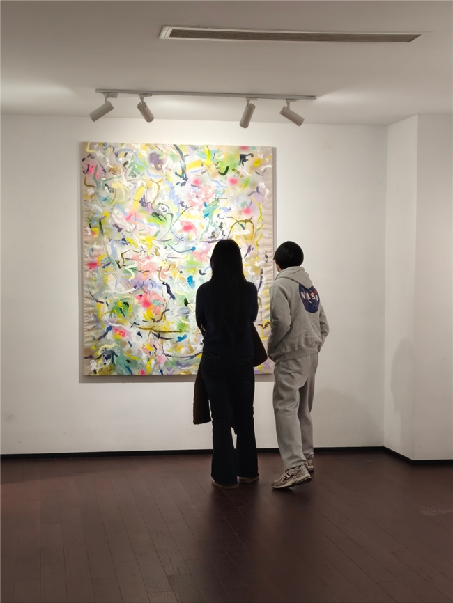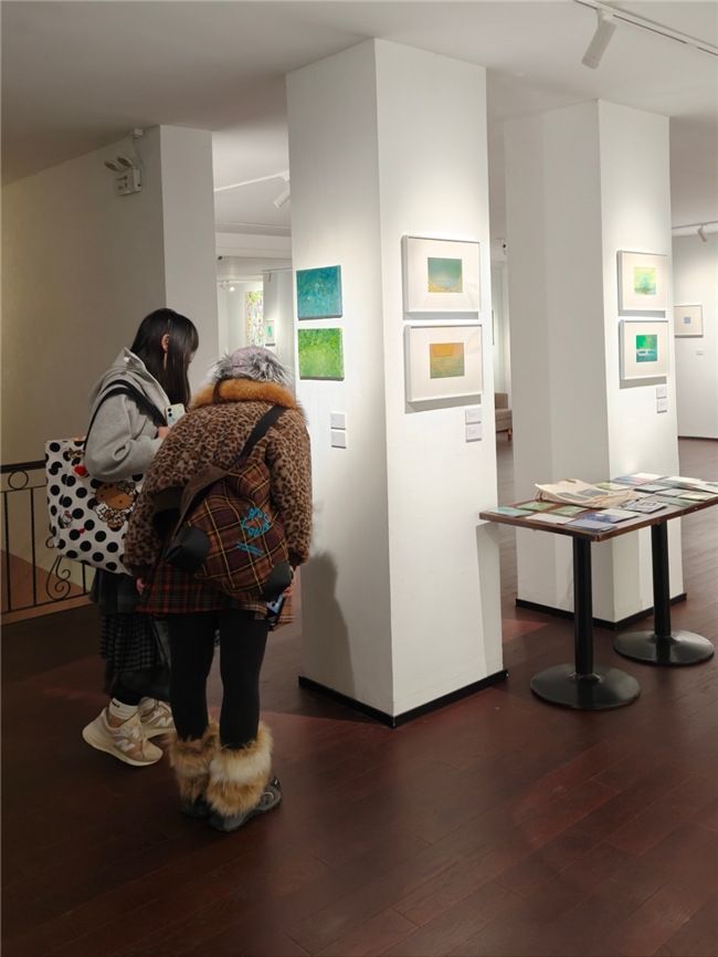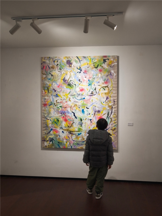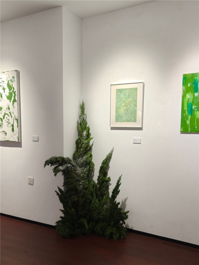 绿色系作品在展览中占据了重要位置。艺术家通过丙烯晕染的淡绿、大胆撞色的鲜绿,以及荡漾的静谧蓝与飘逸的粉紫,营造出一种让心瞬间沉静下来的柔和力量。许多观众表示,这些色彩与笔触仿佛破土而出的新芽,悄然驱散了冬日的沉闷,每一笔都蕴藏着温柔而蓬勃的生命力。